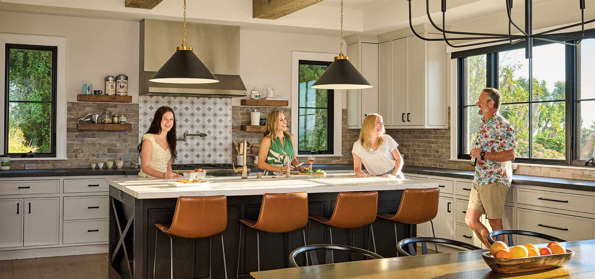 “Everyone is at different stages of their lives,” says Pete. “Not only does everybody have space for themselves, but the communal areas are super inviting. It’s not like having one room that’s off-limits except for holidays, or ‘This is my dad’s room, and he’s watching his TV down there.’ Our home feels inclusive. We’re very, very lucky.”