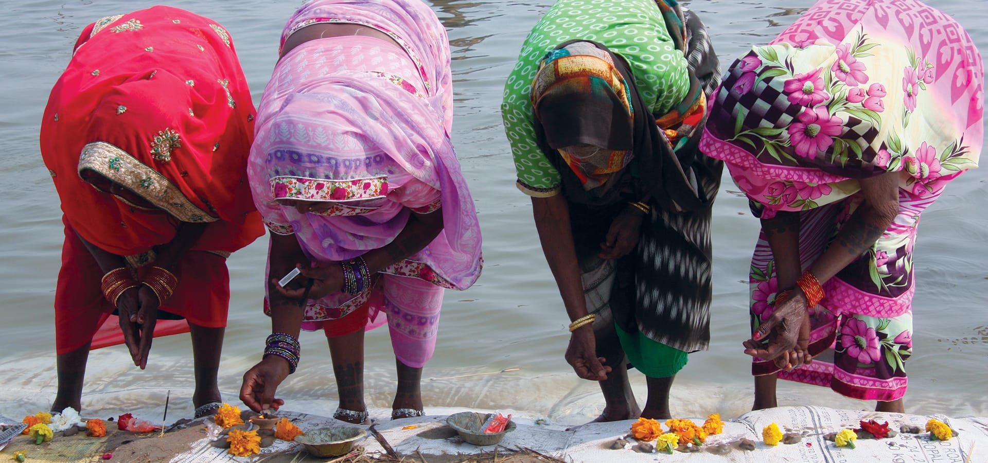 Resigned to staying put, there was much to see on our side of the banks of Mother Ganges. We walked along the dirt roads, paused for photos and selfies with passing pilgrims, admired saris drying in the light wind, observed pilgrims in their private moments of prayer. At the Ganges, multitudes of women adorned in colorful saris—as well as men stripped to their undergarments and splashing children—connected to their own personal reverence.