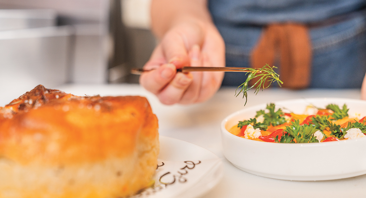 “He helped me arrange an interview with Chef David LeFevre,” she remembers. “I did a seven-course tasting interview out of The Arthur J and was hired as chef de cuisine at FWD, running the back of house operations. Because the restaurant is so small—only 32 seats—we didn’t always have a full management team. It was usually me and whoever the director of ops was at the time running the restaurant. I had just finished my first year at FWD when COVID happened.”