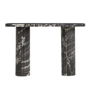 Kanta rectangular 48-inch fluted marble console table in tuxedo marble