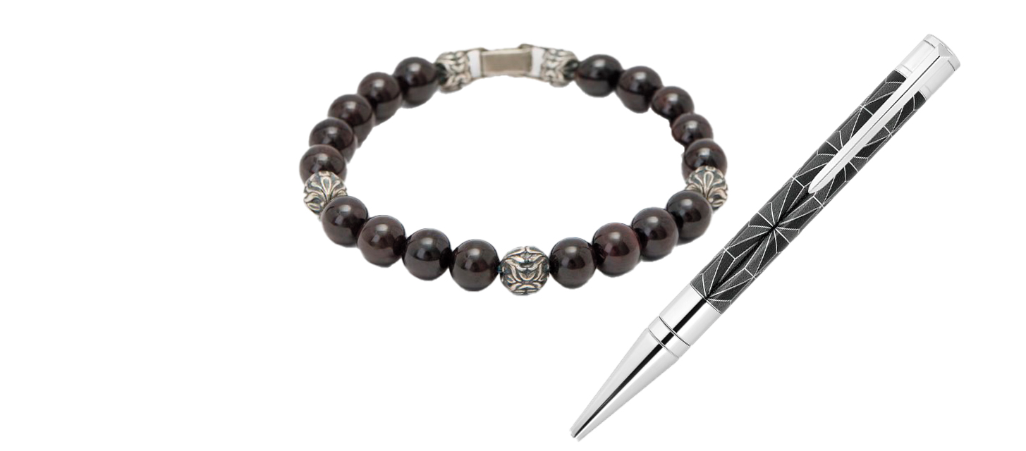 John Varvatos garnet bead bracelet with sterling silver signature design beads and clasp, $1,088