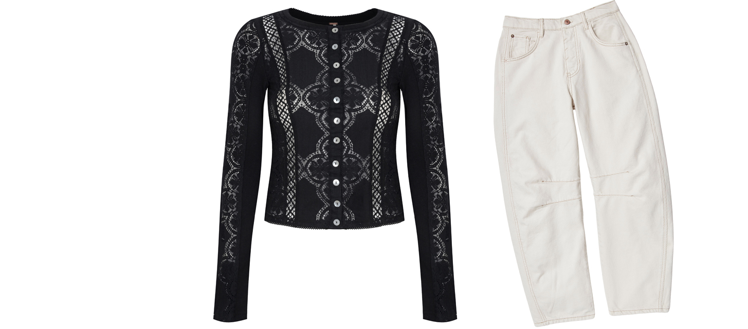 Free People: Jae sheer lace knit long-sleeve top, $78