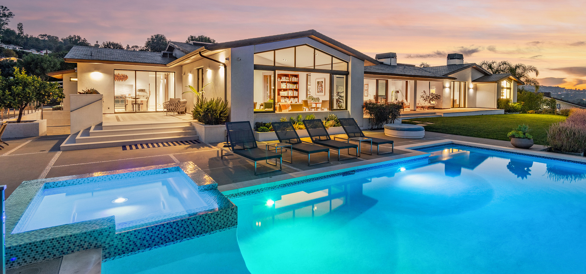 This property is an architectural triumph. The 9,400-square-foot contemporary ranch home is nestled on a sprawling 54,732-square-foot lot with panoramic views.