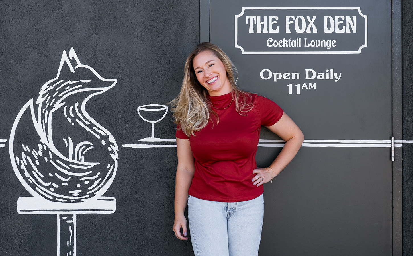 Above: Jordis with her branding work at The Fox Den, Redondo Beach