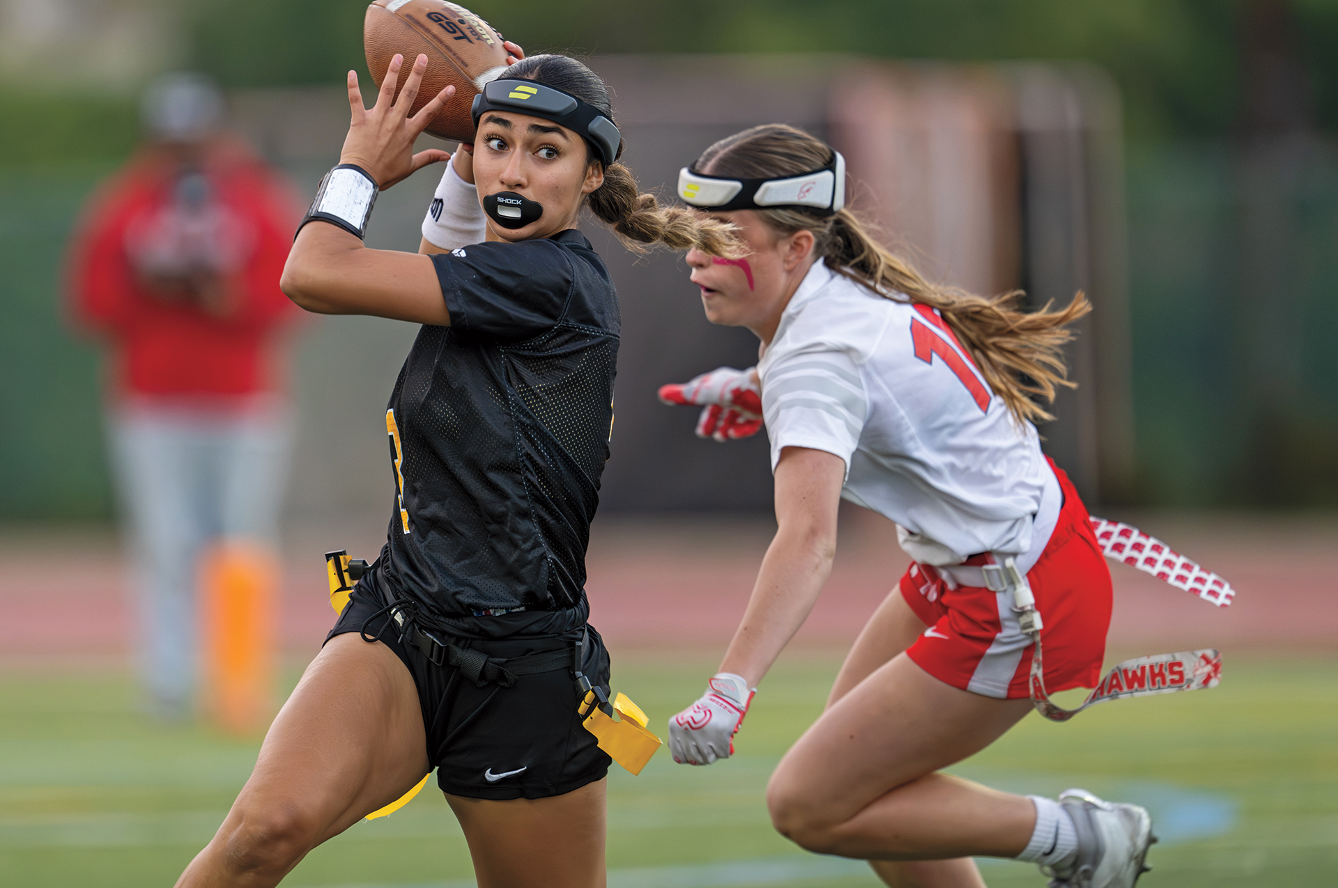 “I fell in love with the sport playing in a coed league,” says Sophie, who helped start the Costa Girls flag football team at Mira Costa High School. “I wanted to create something that would last generations for anyone interested in the sport. [Starting that team] was about giving girls the opportunity to play a sport that we share a passion for.”